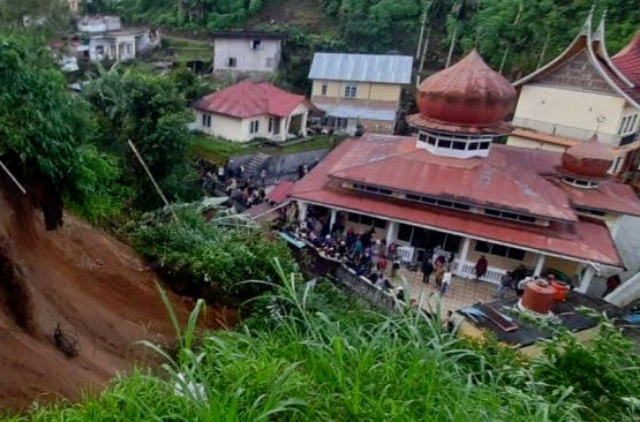 Lebih lanjut, Ia juga mengatakan tanah longsor menimpa WC masjid setelah amblas bahu jalan sepanjang 15 meter akibat curah hujan cukup tinggi melanda daerah itu.