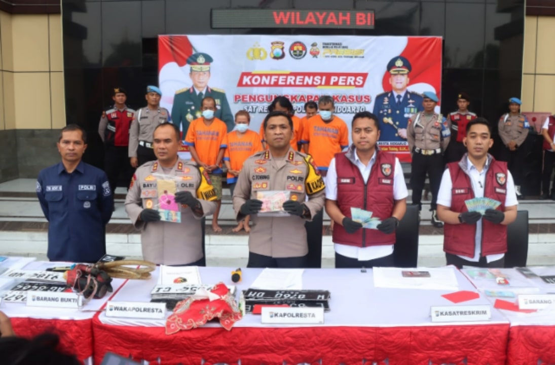 Mereka berurusan dengan polisi karena peredaran uang palsu. Pengungkapan uang palsu di wilayah hukum Polresta Sidoarjo ini, bermula dari laporan masyarakat.