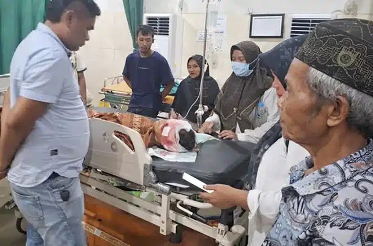 Dari foto yang beredar, tampak korban mengalami luka terbuka cukup parah di kepala dan wajah.
