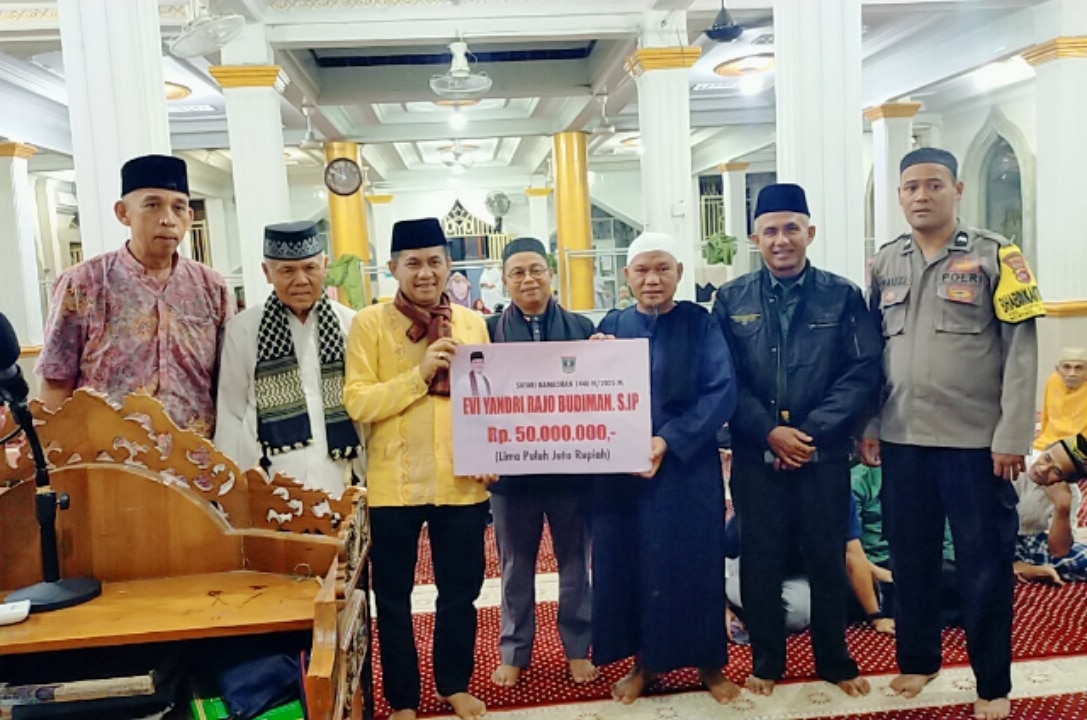 Wakil Ketua DPRD Provinsi Sumatera Barat, Evi Yandri Rajo Budiman, menyalurkan bantuan hibah dari Pemerintah Provinsi Sumatera Barat sebesar Rp.50 juta serta Al-Qur’an untuk mendukung kegiatan keagamaan di masjid. Bantuan tersebut diterima langsung Ketua Masjid Raya Pasar Baru Junaidi Susanto.