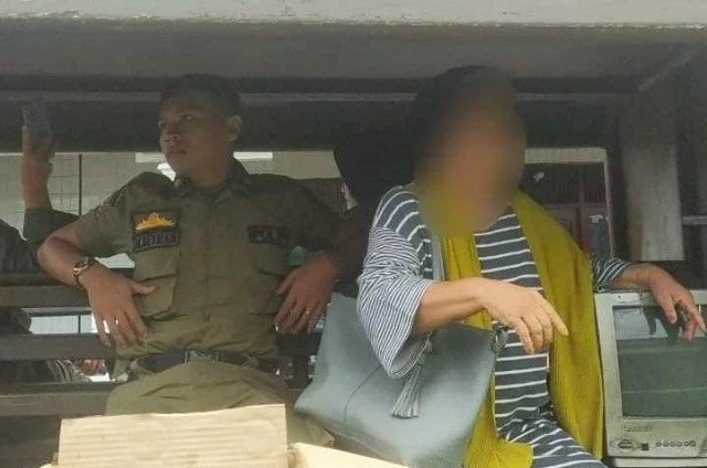 Padang, Radar BI | Seorang perempuan paruh baya terpaksa diamankan oleh petugas Satpol PP Padang, kerena diduga telah meresahkan para tamu di lokasi pemondokan peserta Penas di kawasan kelurahan Ulak Karang Utara, Kota Padang, Sumatera Barat, pada hari Senin (12/6/2023).