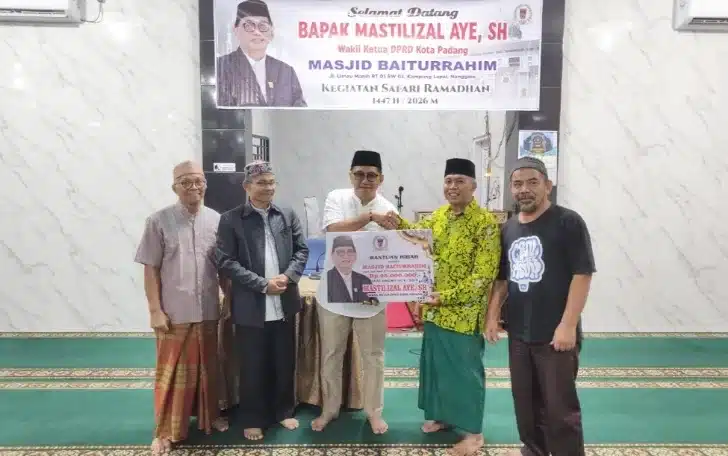 Radar Berita Indonesia – Wakil Ketua DPRD Kota Padang, Mastilizal Aye, melaksanakan kegiatan Safari Ramadhan 1447 H/2026 M di Masjid Baiturrahim, Kampung Lapai, Kecamatan Nanggalo, Kota Padang, Minggu (1/3/2026).