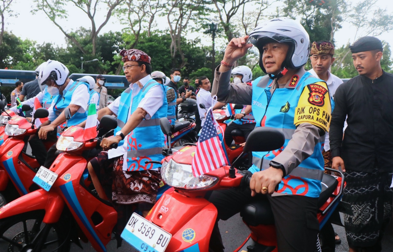 Kapolda Bali, Irjen Pol. Drs. Putu Jayan Danu Putra, S.H., M.Si. menghadiri parade konversi sepeda motor BBM ke listrik di central parkir ITDC Nusa Dua, Bali. Kegiatan ini juga dihadiri oleh Menteri Energi dan Sumber Daya Mineral (ESDM), Arifin Tasrif dan Gubernur Bali, Wayan Koster