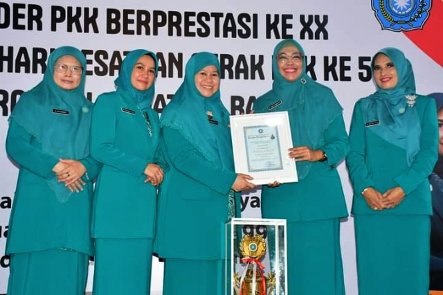 Penghargaan diberikan di akhir pembukaan Jambore Kader PKK Berprestasi Ke-XX Tahun 2023 yang dipadukan dengan peringatan Hari Kesatuan Gerak (HKG) PKK ke – 51 tingkat Provinsi Sumbar.